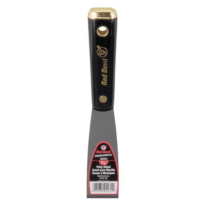 Red DevilĀ® Putty Chisel has a heavy-duty steel blade with a precision beveled chisel edge for removing old putty.