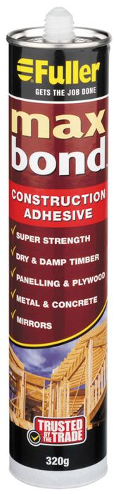 Max Bond™ Construction Adhesive is a synthetic, rubber based adhesive designed primarily for the installation of flooring and wall panels. Max Bond™ Construction Adhesive is also ideal for bonding most common construction materials such as metal, timber and concrete.