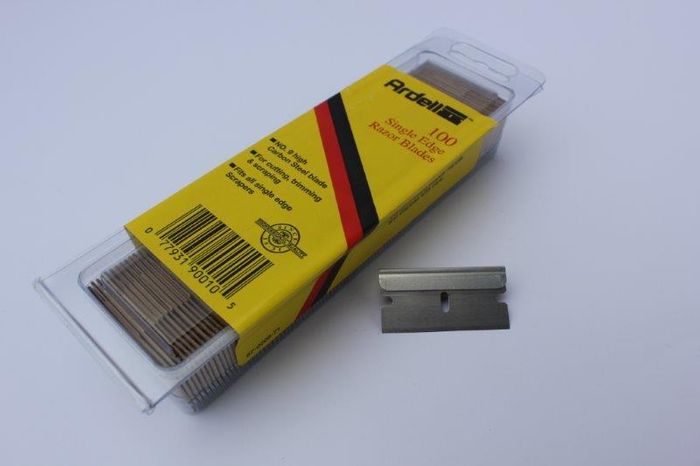 Highest quality USA blade, carbon steel, 0.009'' thick. 2 - facet, steel back.