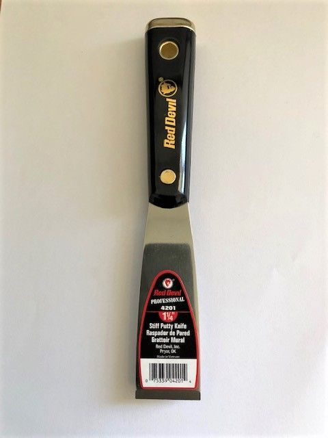 The 4200 Professional Series of quality putty knives, wall scrapers, and taping knives. Black nylon solvent-resistant handle is designed for maximum safety and dependability. High-carbon, precision-ground steel blade is lacquered to prevent rust and extends through handle. The brass-plated, solid steel nail setting head can be used for setting drywall nails and other hammering jobs.