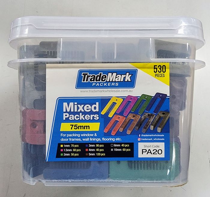 40mm x 75mm (Slotted) Slot Size 16mm Wide x 67mm Deep. High impact, Load-bearing, Solid Levelling Shims Designed for aligning and packing out Windows, Doors, Decking, Pre-cast Concrete Panels, Marble, Granite, and other heavy objects.