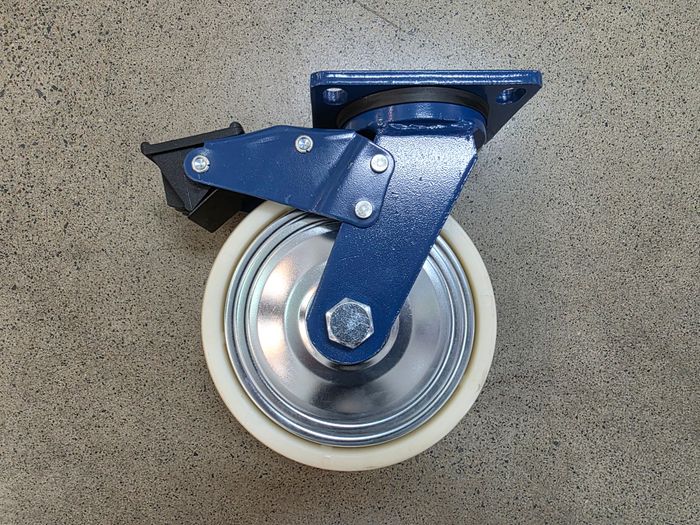 - 200mm Bolt On Plate Swivel Blue Wheel