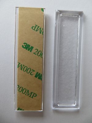 These well designed Stick-On Finger Pulls have a high quality pressure sensitive adhesive backing. There are no holes to drill, simply peel off protective backing paper and apply directly to surface of glass. 3/4" (19 mm) wide, 2-3/4" (70 mm) long with a positive finger grip. 1/8" (3.2 mm) thickness allows plenty of room for by passing glass doors.